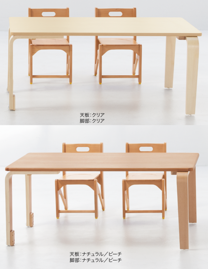 替え天板は3タイプご用意しておりますので園のスペース・子供に合わせて脚部は活かし変更することができます。