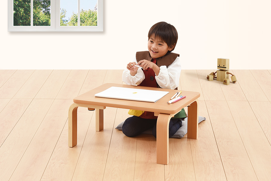 Free deskの座卓仕様。 天板は2サイズから選択可能です。 脚の高さは29cm。 園児・目的に合わせて幅広く利用して頂けます。