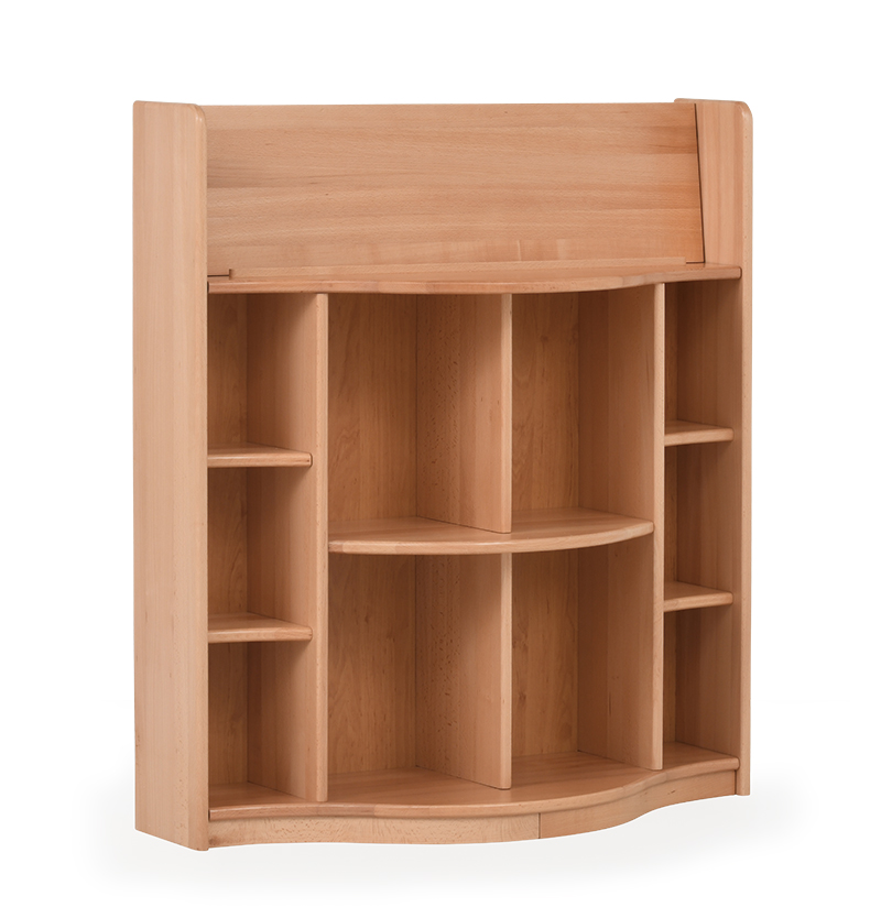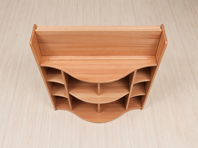 中央部を膨らませた独特なデザインになっていますので大きい絵本や書籍などをたっぷり収納。