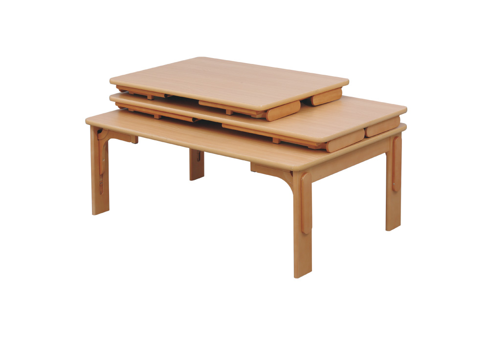 | ロック機構 | 折りたためる脚にはロック機構がついており、このロックは使用時にもしロックが外れていれば机として機能しない様になっており危険を知らせてくれます。折りたたんだ際も脚のロックが解除されない様配慮されています。 |