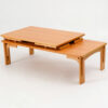 | ロック機構 | 折りたためる脚にはロック機構がついており、このロックは使用時にもしロックが外れていれば机として機能しない様になっており危険を知らせてくれます。折りたたんだ際も脚のロックが解除されない様配慮されています。 |