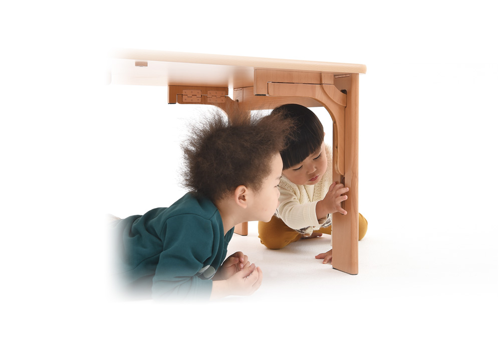 | 折りたためる脚 | 収納性を考慮しコンパクトに畳むことのできる、折りたたみ式の脚を採用。 |